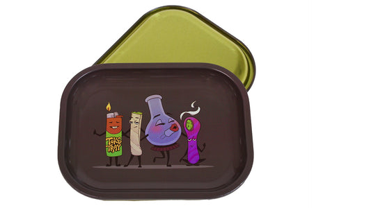 All of our rolling trays are offered in sets as a bundled deal with a grinder and rolling papers